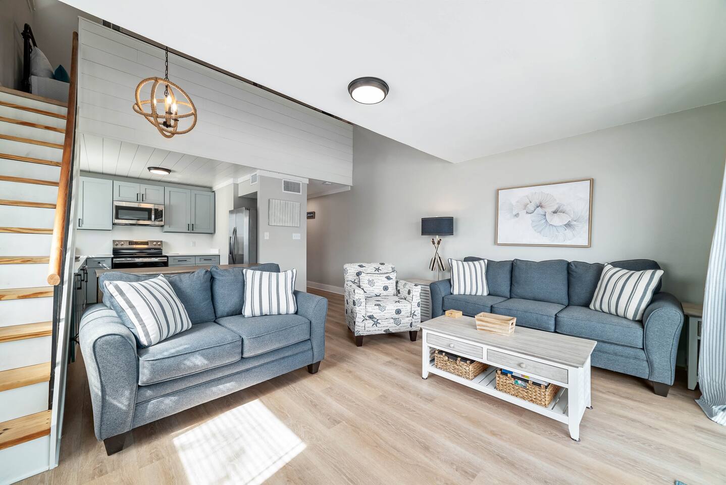 *** MONTHLY DISCOUNTS AVAILABLE*** Escape to paradise in this beautifully renovated top-floor corner condo in Orange Beach! Lei Lani 321 offers the perfect blend of peace, privacy, and convenience—just a short walk to the beach and close to top dining and attractions. Enjoy Gulf views, two outdoor pools, and a low-density beach area ideal for families or couples seeking a relaxing getaway. With 2 bedrooms, 2 bathrooms, and thoughtful amenities like 3 Roku TVs, free Wi-Fi, and picnic areas with grills, this condo has everything you need for a memorable stay. Property Highlights: 🌟 Prime Location – Just minutes from top attractions and local dining hotspots 🏖️ Ideal for Beach Lovers – Perfect base for exploring the best of Alabama’s stunning coastline 🐬Flexible Accommodations – Comfortably sleeps up to 2 adults and 4 children, or up to 6 adults 🛏️ Spacious Sleeping Arrangements – One bedroom with a king bed, plus an upstairs loft with two full-sized beds 🛋️ Extra Space Option – While there’s no sofa sleeper, an additional child can be accommodated on the sofa upon request Relaxation Awaits: 🪑 Unwind on the Balcony – Savor the salty sea breeze and scenic views from your private balcony 🏖️ Beach Access Made Easy – Just steps away, with a convenient crosswalk and signal for safe crossing 🌅 Breathtaking Vistas – Enjoy stunning 4th-floor views, accessible by elevator or stairs 🐬 Nature at Your Doorstep – Ole River, located behind the property offers peaceful fishing and chances to spot dolphins and manatees 🛥️ Riverside Pool Bliss – Lounge by the riverside pool while watching boats glide by and sea life play Comfortable Living Spaces 🛏️ Master Suite – Features a king-sized bed, smart TV, and generous closet space for a relaxing retreat 🛌 Upstairs Bedroom – Offers two full-sized beds with its own smart TV! Perfect for kids or additional guests 🚿 Modern Bathrooms – First-floor bath includes a sleek tub/shower combo; second-floor bath features a walk-in shower and extra closet space Fully Equipped Kitchen 🍽️ Stocked with drinkware, pots, pans, utensils, and a convenient K-Cup coffee maker 🧊 Full-size refrigerator with icemaker and filtered water for added comfort Resort-Style Amenities 🏊♂️ Enjoy three pools: a scenic elevated riverside pool and a refreshing Gulf-side pool 🔧 Heated indoor pool is currently closed for upgrades, but the two outdoor pools are open and fantastic! Stylish Features ✨ Luxury vinyl flooring, quartz countertops, tasteful coastal décor, and cozy outdoor furniture 🤝 As active and attentive hosts, we’re committed to making your stay relaxing and memorable Ready to Book? Secure your spot at Lei Lani 321 and experience the best of Orange Beach! 📘 After booking, be sure to check out our online Guidebook for local events, dining, and activity recommendations.